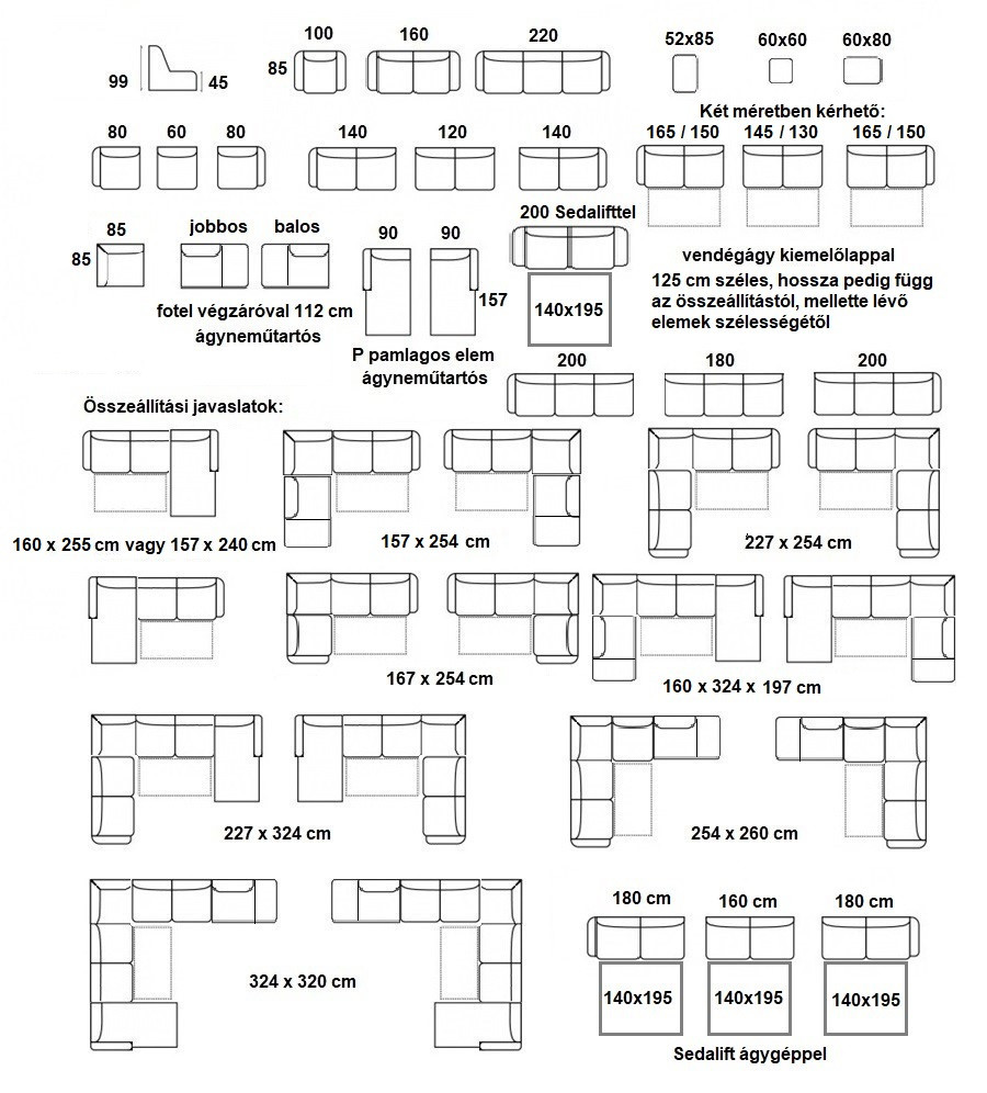 - többféle ágyazható elem - a Sedaliftes belga ágygéppel nagyobb vendégágy érhető el, fontos, hogy ez egy kicsit nagyobb elemben fér el,