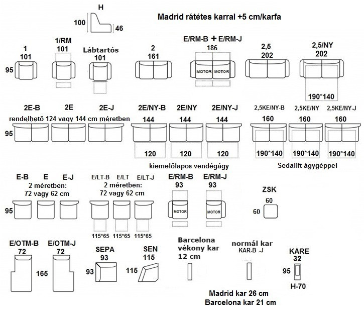 Rendelhet csak 1 elemet is, vagy hagyományos 3-2-1 vagy 3-1-1 garnitúrát. Sarok variációknak csak képzelete szab határt.