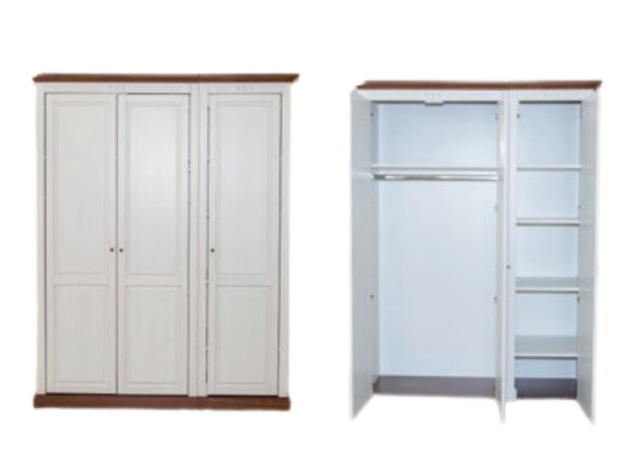 Ruhás, akasztós és polcos szekrény 3 ajtóval - a kétajtós szekrény 1 polccal és akasztórúddal, az 1 ajtós szekrény végig polcos.