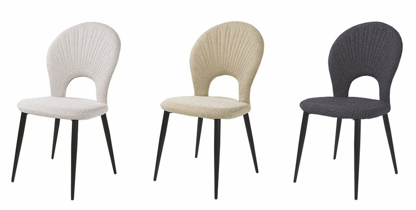 Étkező szék kagyló háttámlával, 3 féle szövet kárpitozással.