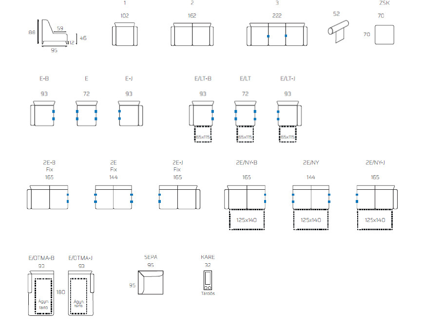 Magas komfort, puha süppedős, fix és vendégágyas változatban is rendelehtő! Elemes garnitúra, mely rendkívül széles elemválasztékból rendelhető.